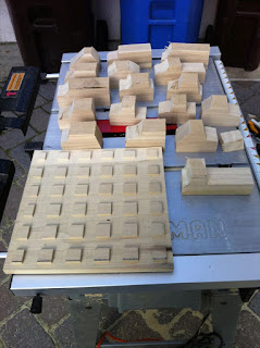 I did the same for the base too, it took a long time, but came out pretty good. I chipped away the corners of the squares that were left with a chisel to allow the cars to move between them more easily.